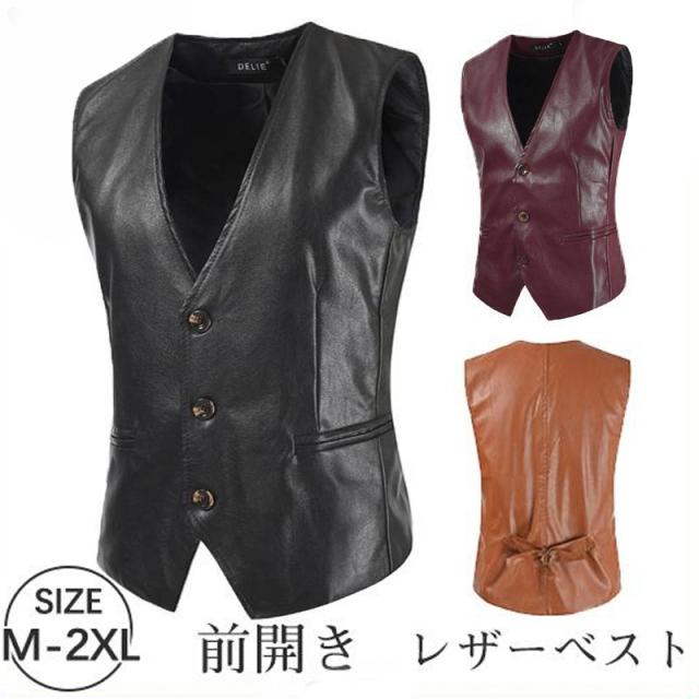 レザーベスト ベスト メンズ バイク用ベスト ジレベスト 通勤 カジュアル ライダース 前開き チョッキ 防風 フェイクレザー 秋 冬 春 防寒 PU