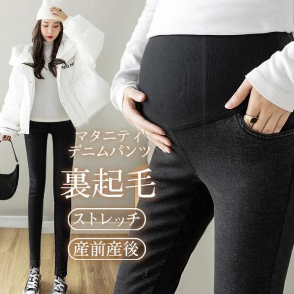 マタニティ デニムパンツ 安い ズボン 裏起毛 ジーパン 暖かい ボトムス ジーンズ マタニティ服 妊婦 妊娠 産前産後 秋 冬 美脚 おしゃれ 厚手