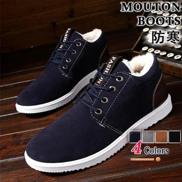 ムートンブーツ スニーカー 裏ボア スノーブーツ 雪靴 裏起毛 スノーシューズ ふわふわ メンズ ブーツ 防寒 ワークブーツ カジュアル 冬 保温