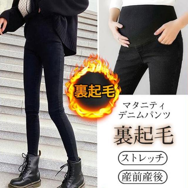 マタニティ デニムパンツ 安い ズボン 裏起毛 ジーパン 暖かい ボトムス ジーンズ マタニティ服 妊婦 妊娠 産前産後 秋 冬 美脚 おしゃれ 厚手