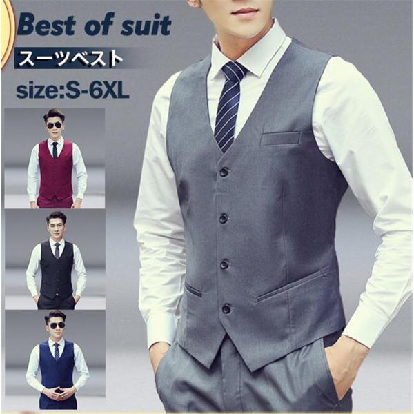 スーツベスト フォーマルベスト メンズ 無地 前開き Vネック フォーマル ベスト スーツ ビジネス 男性 紳士的 結婚式 宴会 スリム 春秋 大人