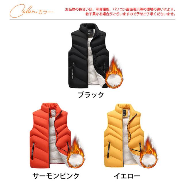 中綿ベスト メンズ ベスト 無地 中綿入り 裏起毛 ダウンベスト ハイネック ジップアップ トップス キルティング カジュアル 秋冬 ゆったり 普段着