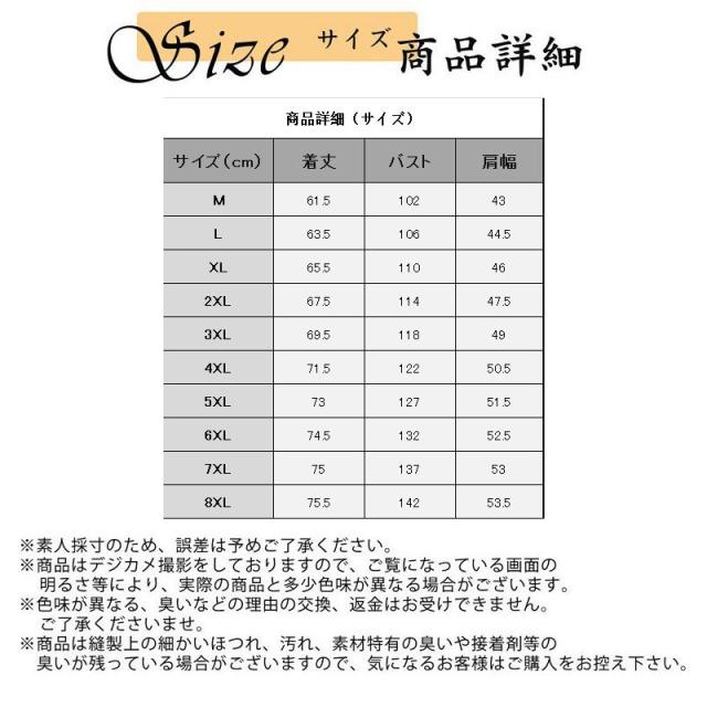 サイズ:/M/L/XL/2XL/3XL/4XL/5XL/6XL/7XL/8XL