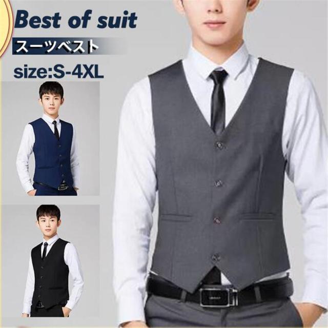スーツベスト フォーマルベスト メンズ 無地 前開き Vネック フォーマル ベスト スーツ ビジネス シンプル 紳士的 結婚式 送料無料 オフィス