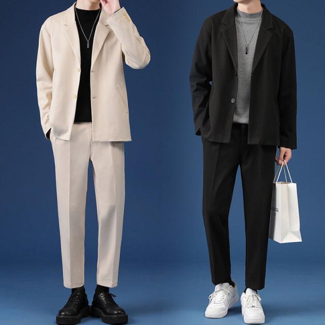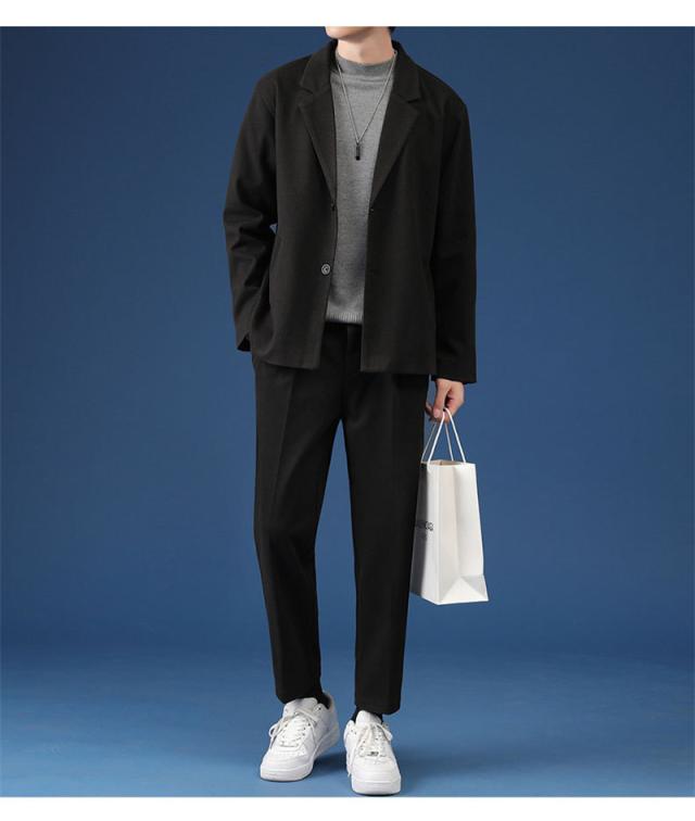 スリムなシルエットで、すっきりした印象を与えるメンズスーツジャケットは、