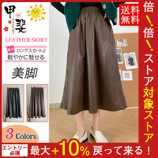スカート レディース プリーツ フレアスカート ロングスカート フェイクレザー ボトムス 体型カバー 大きいサイズ 通勤 着やせ 上品 膝丈 PU