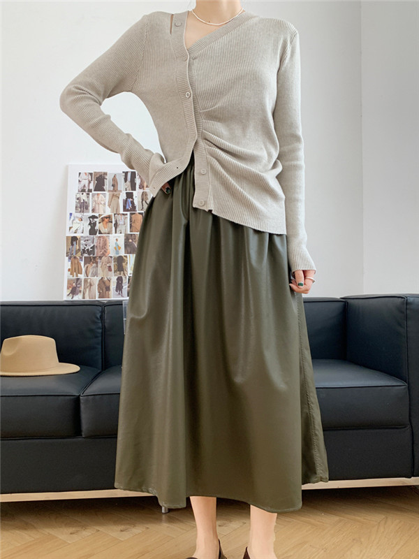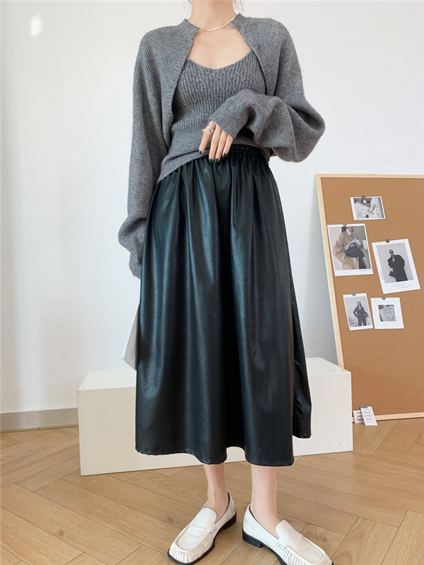 【キーワード】レザースカート プリーツスカート ウェストゴム マキシスカート ハイウェスト レザー ロングスカート ロング丈 春 秋 PU合皮 冬 おしゃれ 可愛い ひざ丈 オフィス 膝下丈 ワンピース ゆったり 革スカート