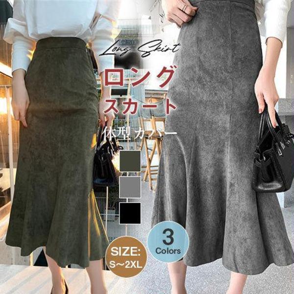 スカート レディース マーメイド ロングスカート フェイクレザー スエード調 ボトムス Aライン PU 体型カバー 大きいサイズ 通勤 着やせ 膝丈