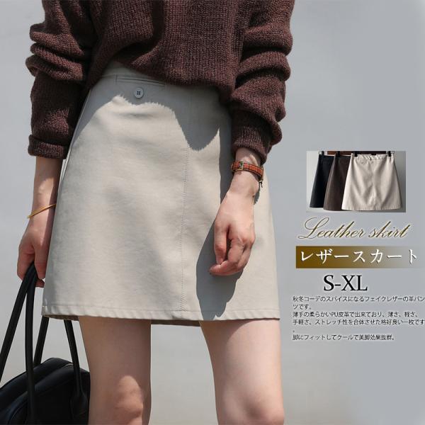タイトスカート レザースカート レディース ショート丈 ボトムス 無地 カジュアル フェイクレザー シンプル 着痩せ きれいめ アウトドア エレガント