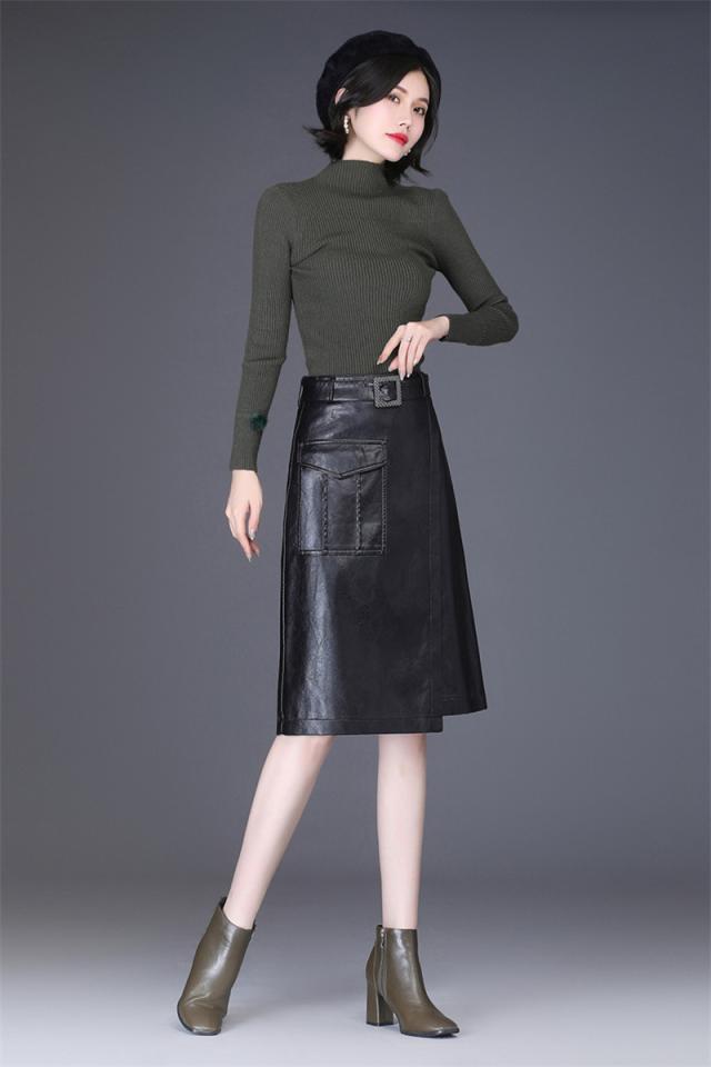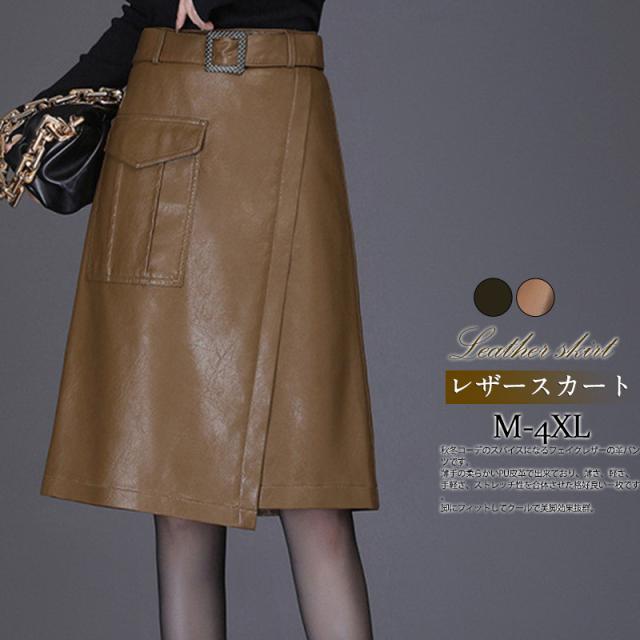 レザースカート レディース ロングスカート ロング丈 ハイウエスト フェイクレザースカート 着痩せ スリム 膝丈 体型カバー ファション 大人 上品