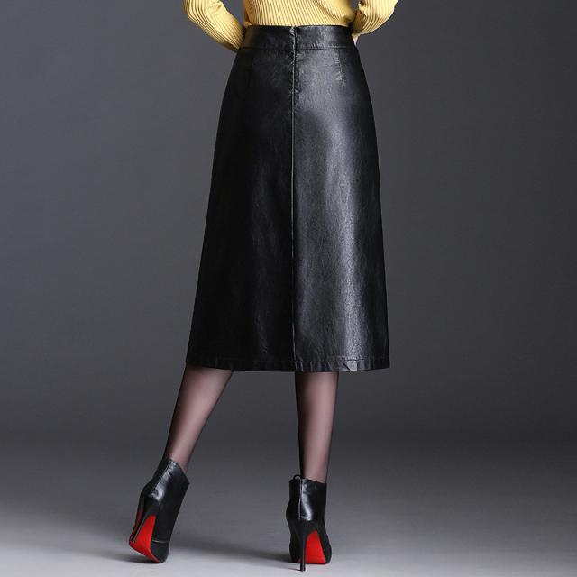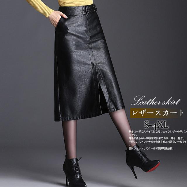 レザースカート レディース ロングスカート スリット ハイウエスト フェイクレザースカート 着痩せ ゆったり 膝丈 体型カバー きれいめ シンプル