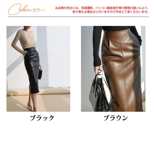 レザースカート レディース ロングスカート 本革 ボトムス ハイウエスト スリット フォマール 着痩せ ゆったり 体型カバー ファション トレンド