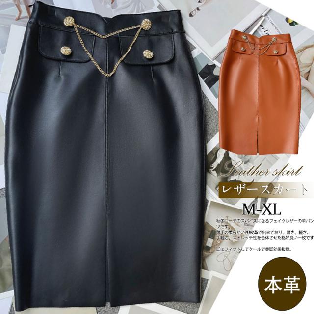 レザースカート レディース ロングスカート 本革 ボトムス ハイウエスト ビジネス フォマール 着痩せ ゆったり 上品 きれいめ シンプル フェミニン