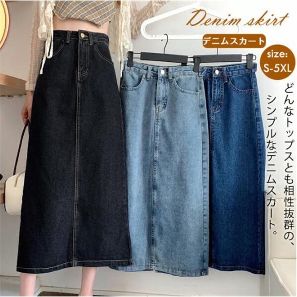激安 スカート デニムスカート ロング丈 マキシ Aライン ロングスカート ハイウエスト 大きいサイズ おしゃれ 着痩せ カジュアル ゆったり 可愛い