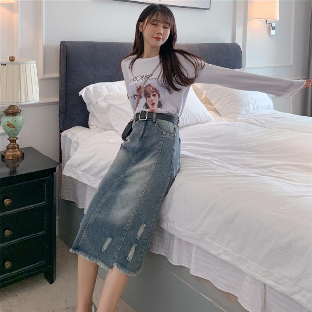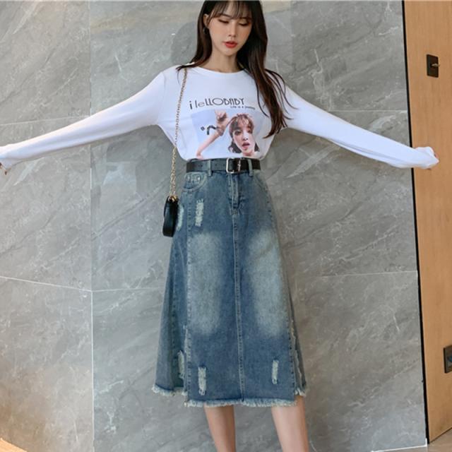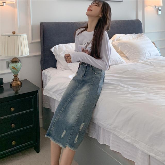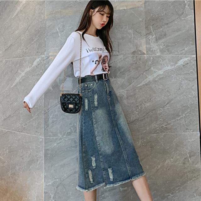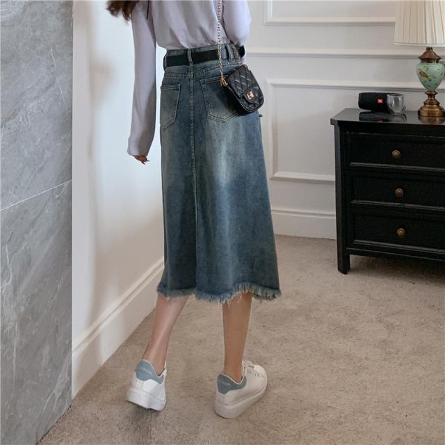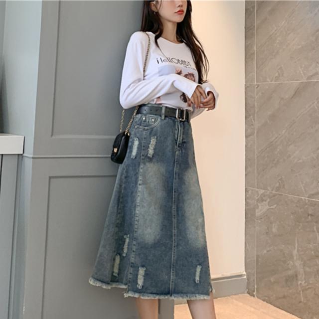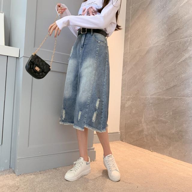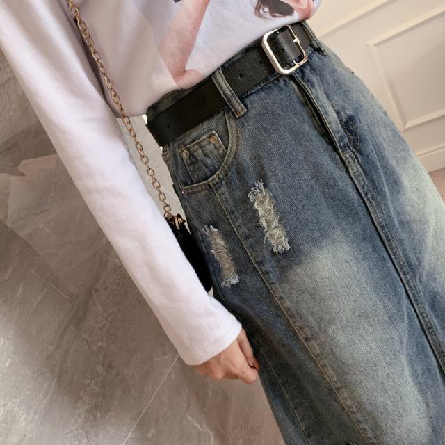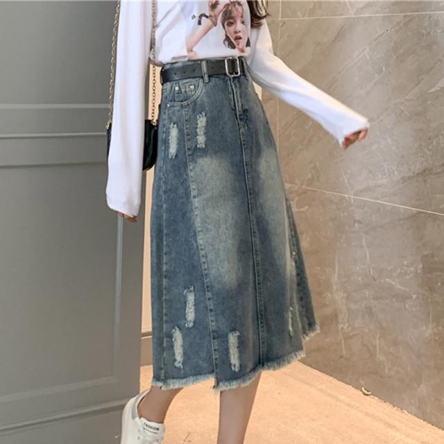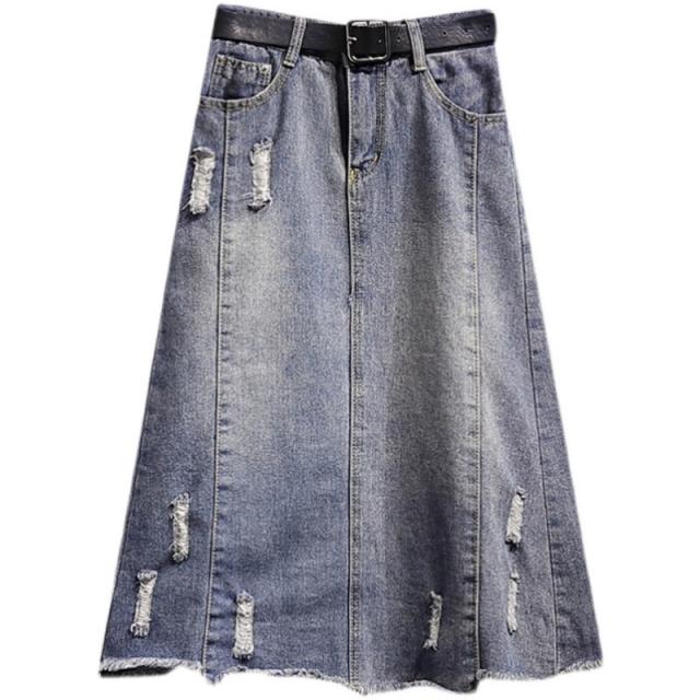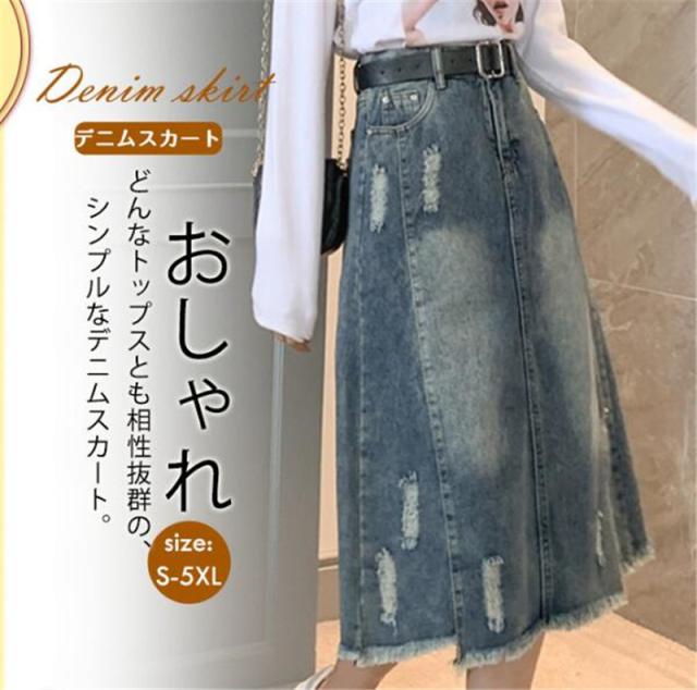 セール スカート デニムスカート ロング丈 ダメージ スリット ハイウエスト 大きいサイズ おしゃれ 着痩せ 春夏 カジュアル ファション プレゼント