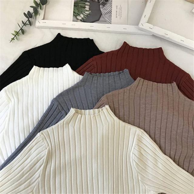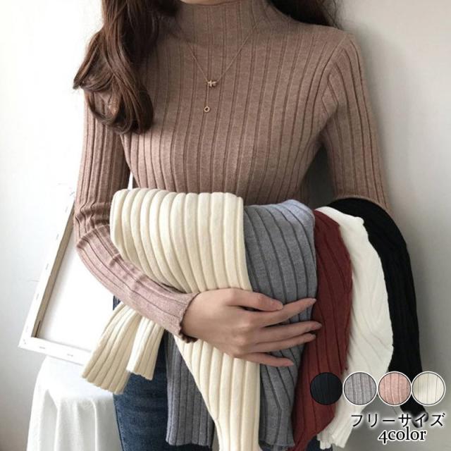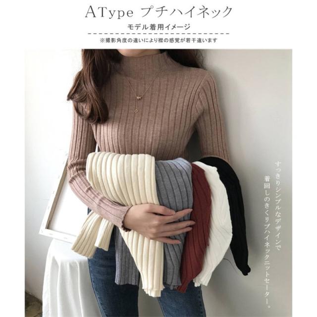 激安 カットソー レディース トップス プチハイネック ニット セーター 長袖 無地 インナー カジュアル 秋冬 暖かい 厚手 部屋着 おしゃれ 女性