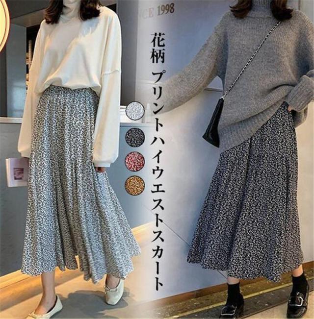 スカート レディース 花柄スカート フラワーデザイン マキシ おしゃれ 体型カバー 柔らかい ボトムス お花見 部屋着 揺れる ゆったり 春夏秋冬