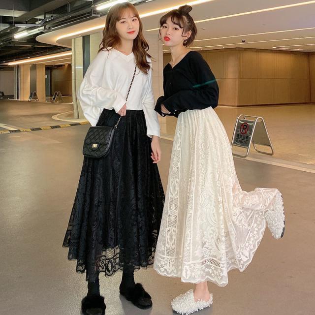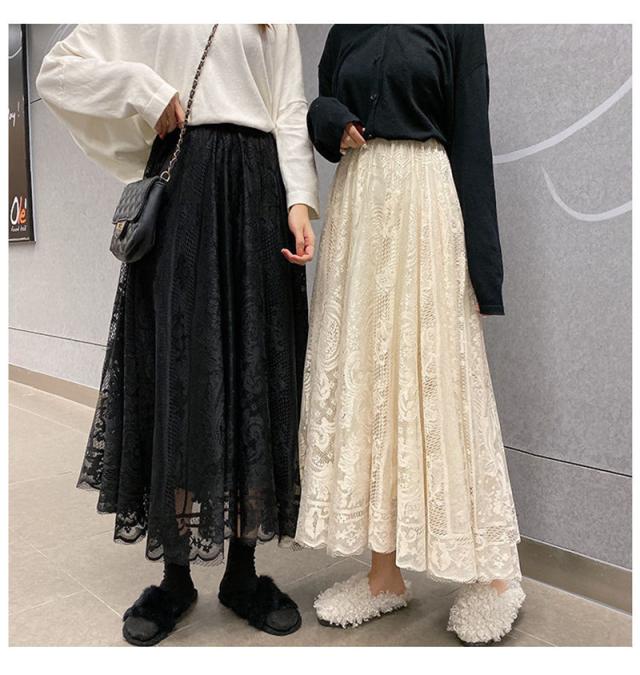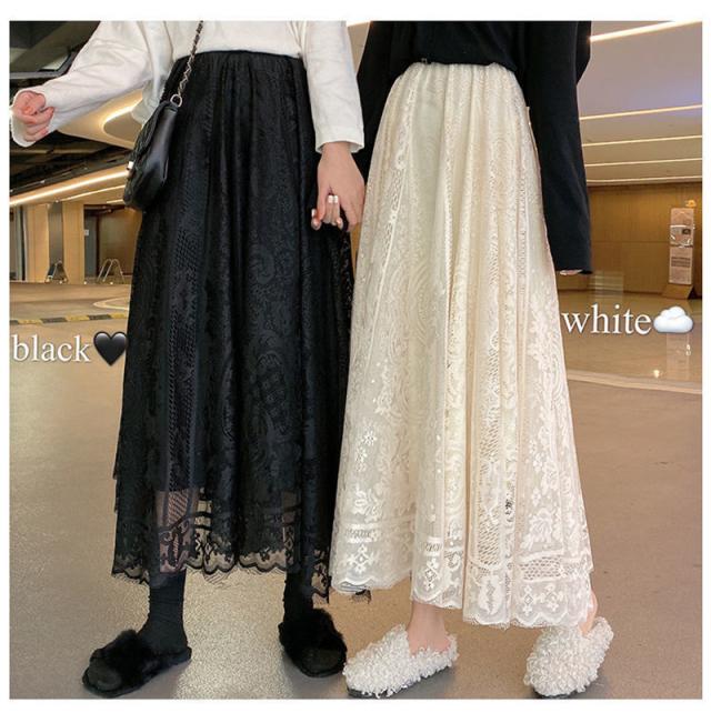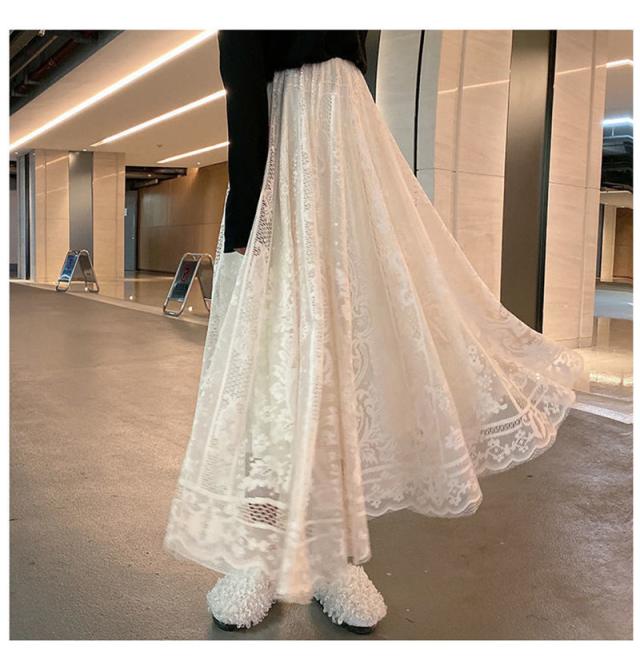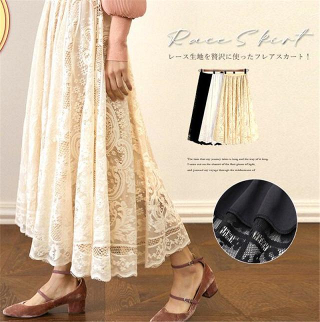 スカート レディース レーススカート ロング マキシ おしゃれ 体型カバー 柔らかい ボトムス お花見 部屋着 可愛い 揺れる ゆったり 春夏秋冬