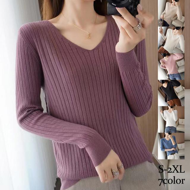 激安 カットソー レディース トップス Vネック ニット 長袖 リブ 薄手 インナー レイヤード カジュアル 秋冬 暖かい ルームウエア おしゃれ