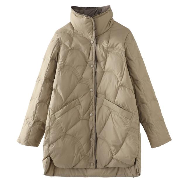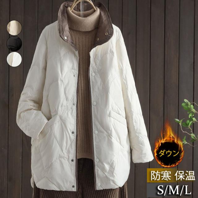 ダウンコート レディース ダウンジャケット ロング 膝丈 アウター 無地 カジュアル ゆったり 着痩せ 薄手 通勤通学 羽織り 可愛い アウトドア