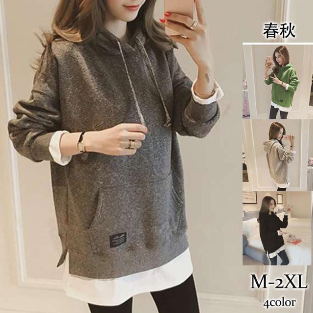 半額セール パーカー レディース 長袖パーカー フード付き トップス プルオーバー 薄手 無地 レイヤード カジュアル シンプル ゆったり 春秋 大人
