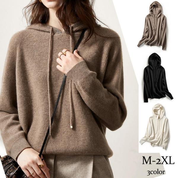 長袖パーカー パーカー レディース フード付き トップス カットソー ウール 無地 カジュアル シンプル ゆったり 春秋 高級感 上品 ファション