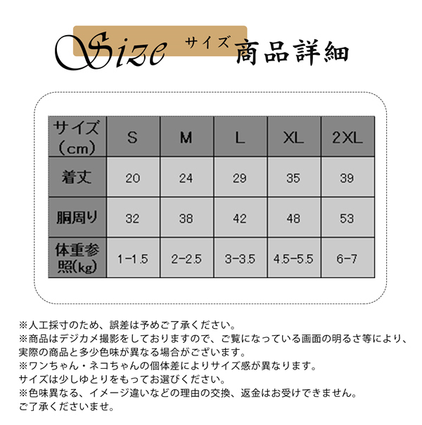 ※ワンちゃん・ネコちゃんの個体差によりサイズ感が異なります。サイズは少しゆとりをもってお選びください。