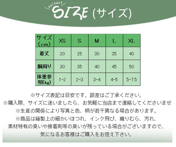 ※ワンちゃん・ネコちゃんの個体差によりサイズ感が異なります。サイズは少しゆとりをもってお選びください。