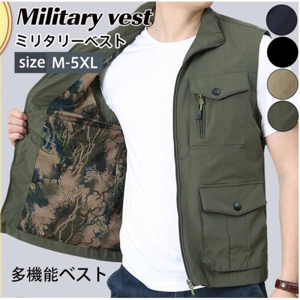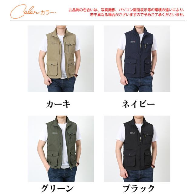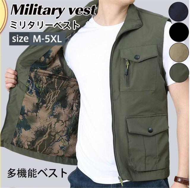 フィッシングベスト ミリタリーベスト 多機能ベスト メンズ 英字 多ポケット カーゴ ミリタリー 大きいサイズ 機能性 釣り 無地 作業着 春夏秋