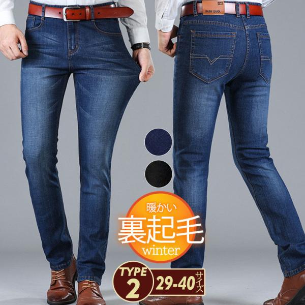 一部即日発送 ジーンズ 裏起毛 メンズ デニムパンツ ボトムス ロング ストレート ジーパン ズボン カジュアル ゆったり 保温 通勤 通学 おしゃれ