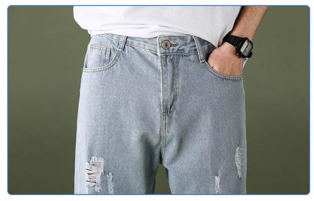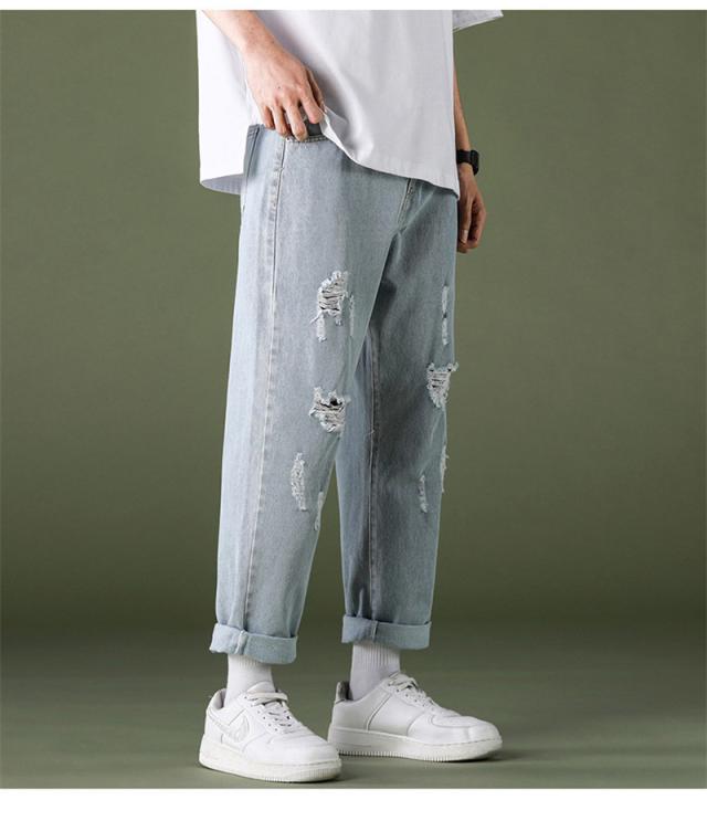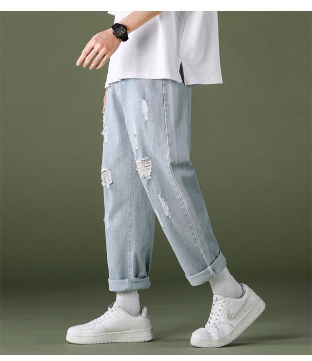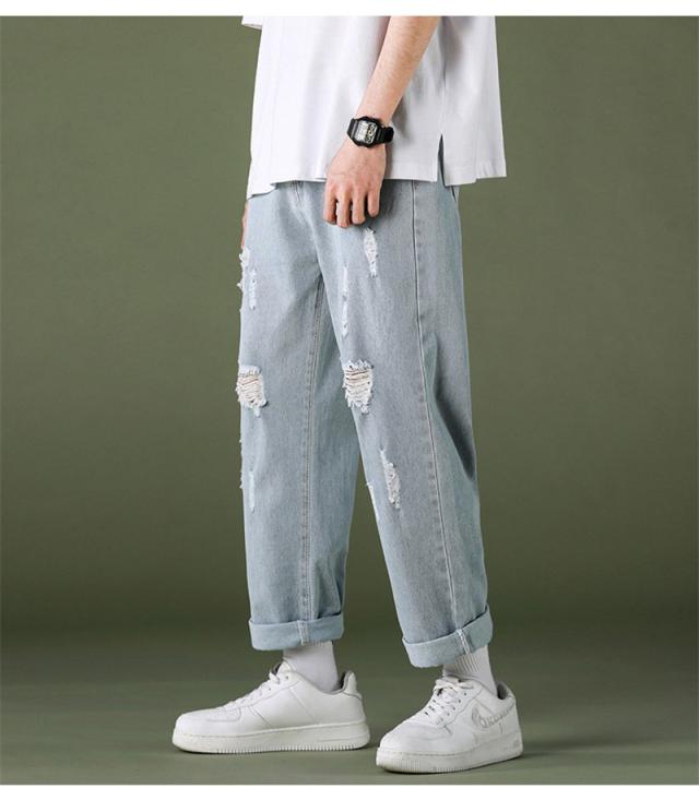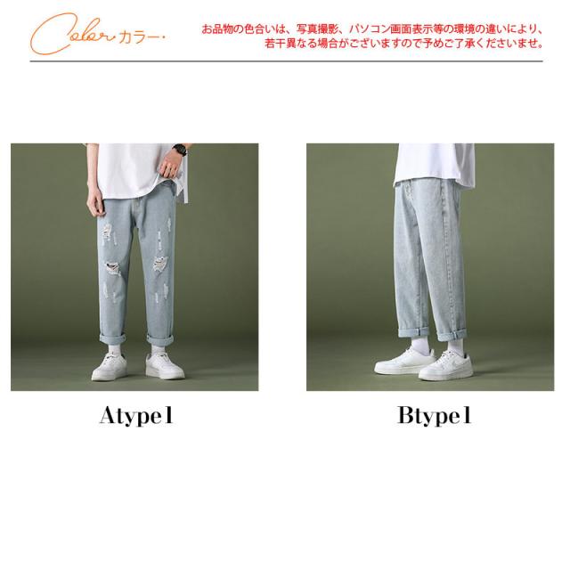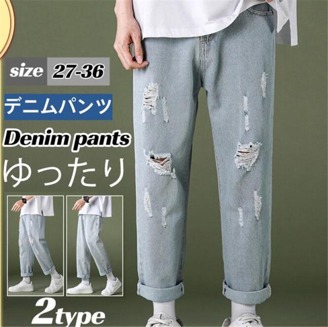 ダメージパンツ メンズ デニムパンツ ワイドパンツ ジーンズ ボトムス カジュアル ストレッチ 伸縮 ゆったり ファション 吸汗 速乾 おしゃれ 春夏
