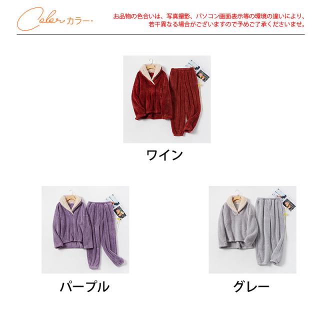 パジャマ レディース 冬 ルームウェア 上下セット 開襟 無地 部屋着 長袖 セットアップ 厚手 もふもふ 防寒 カジュアル おしゃれ カップル 秋冬