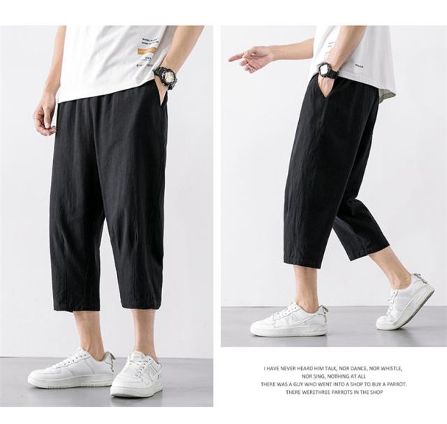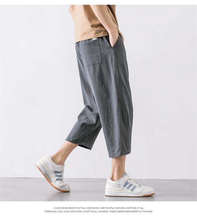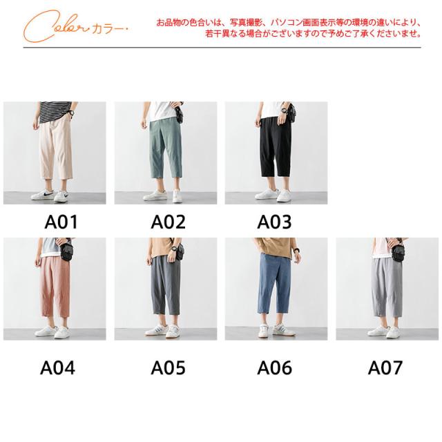 サルエルパンツ メンズ 麻ズボン パンツ 棉麻 七分丈 調整紐 ゆったり 大きいサイズ 夏服 薄手 無地 通勤通学 カジュアル 部屋着 お出かけ