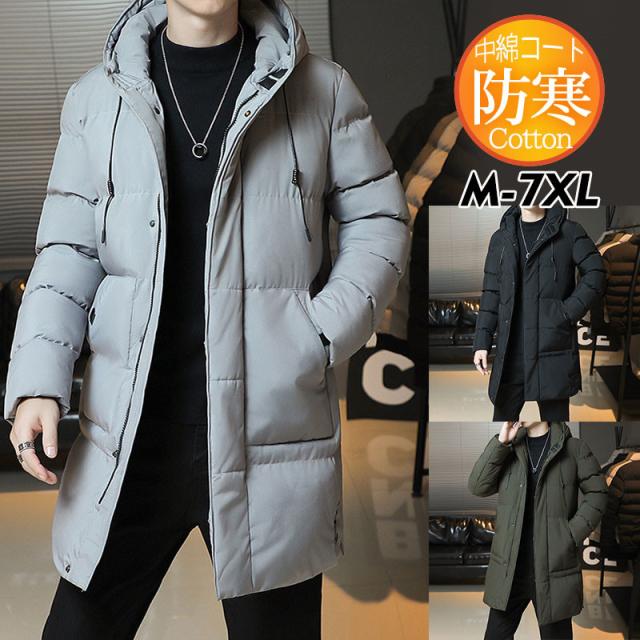 激安 中綿コート メンズ ダウンコート ダウンジャケット ロング 無地 フード付き カジュアル 厚手 アウトドア 冬服 保温 防風 通勤通学 おしゃれ