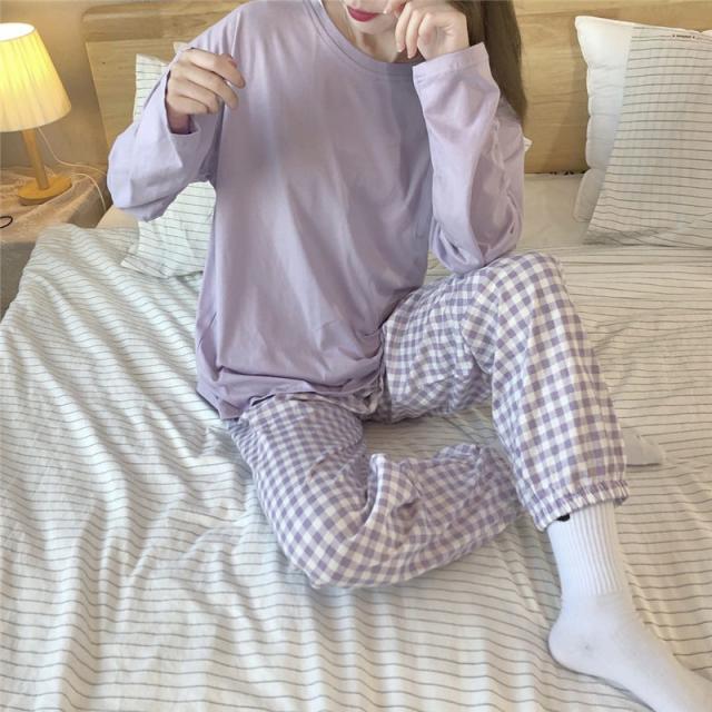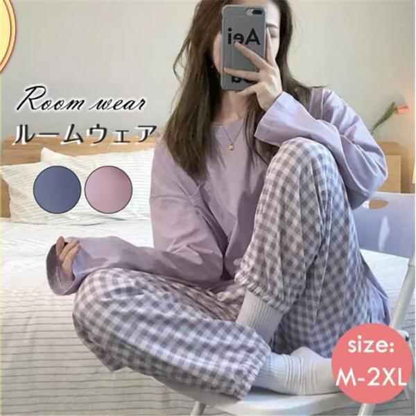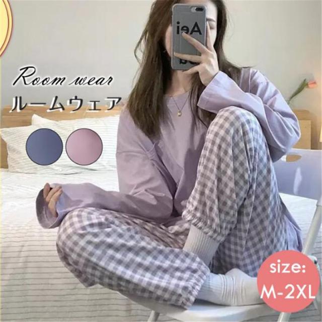 激安 ルームウェア レディース パジャマ 長袖 セットアップ チェック柄 ロングパンツ シンプル 可愛い ゆったり プレゼント 女性用 寝間着