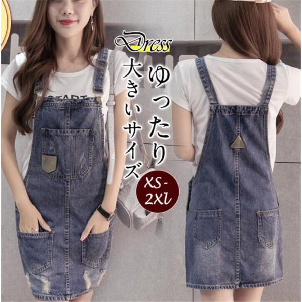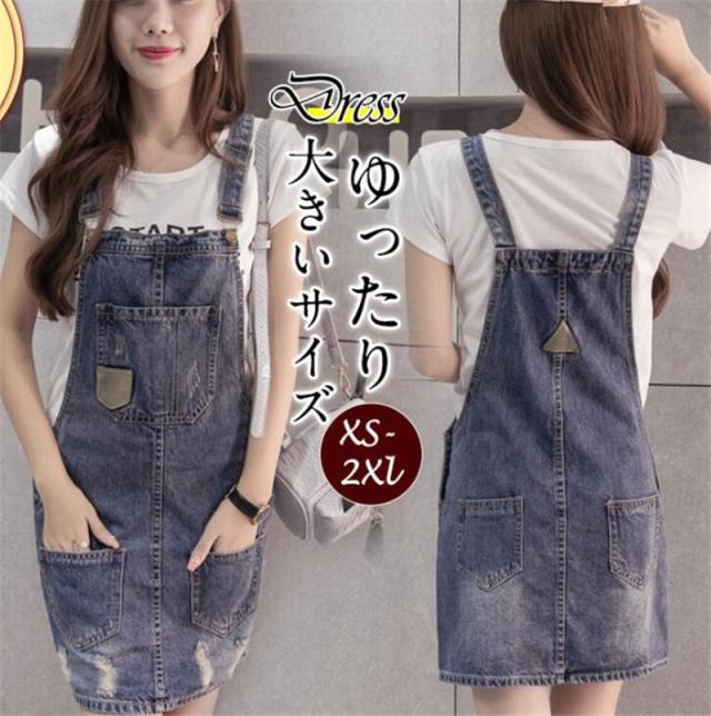 ジャンパースカート デニム サロペット レディース スカート キャミワンピース ポケット付き 重ね着 体型カバー 着痩せ スリム カジュアル 可愛い