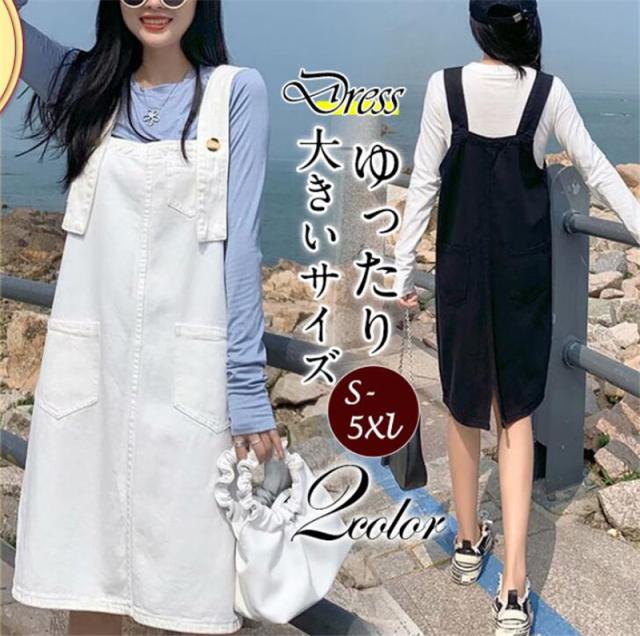 激安 デニム サロペット スカート レディース ジャンパースカート キャミワンピース 重ね着 体型カバー 着痩せ 無地 ゆったり カジュアル 可愛い