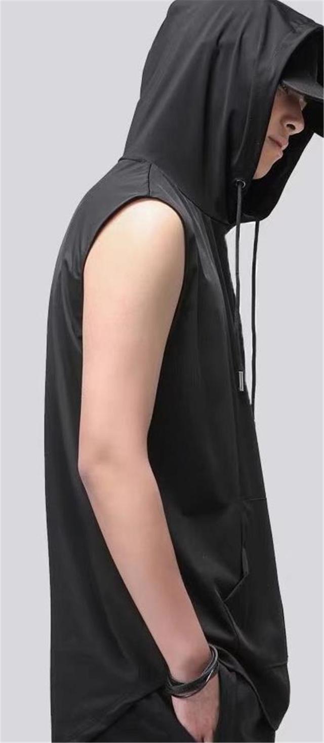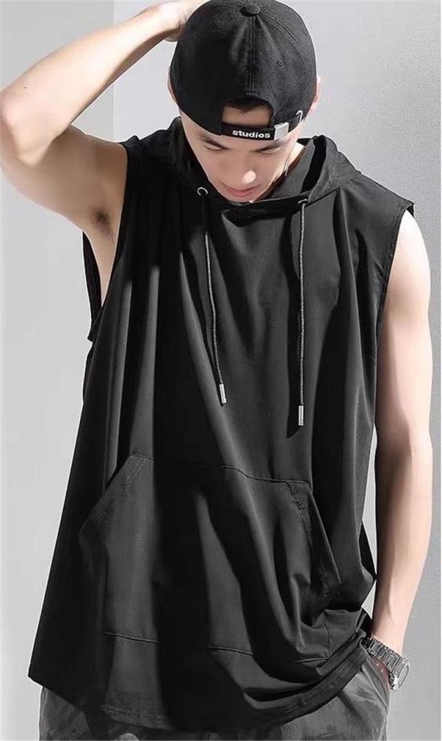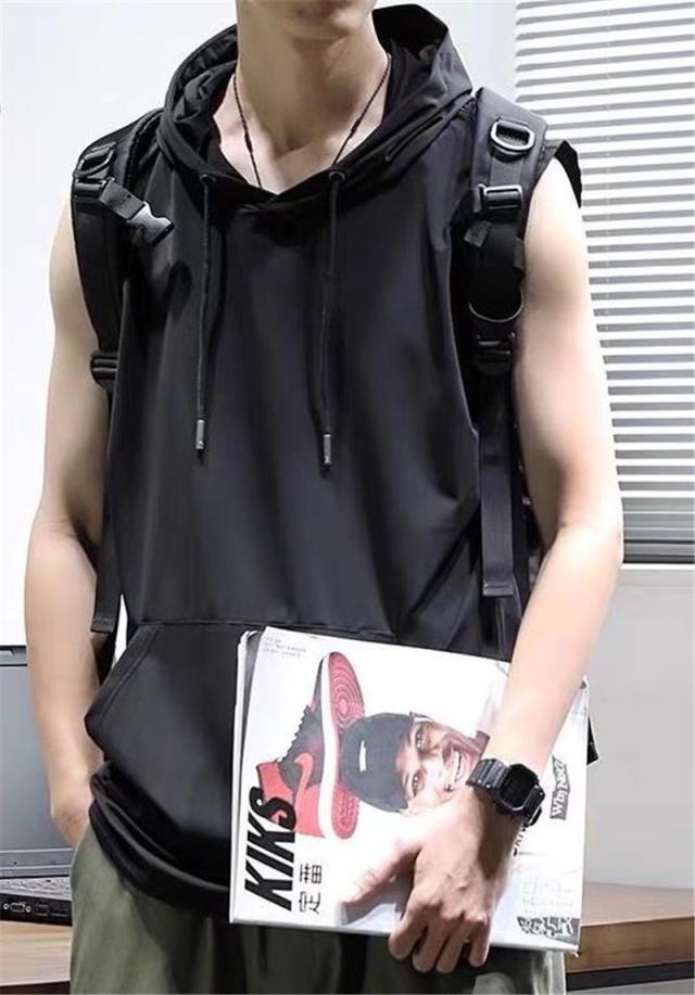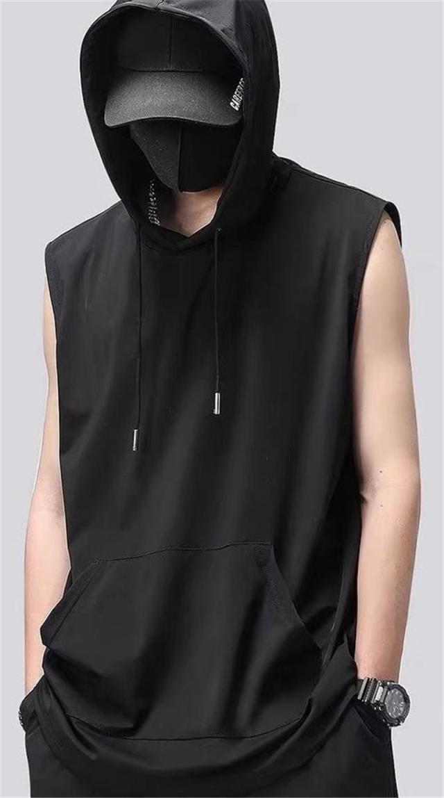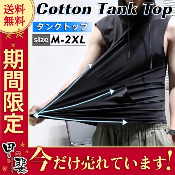 セール タンクトップ パーカー メンズ フード付き ノースリーブ カジュアル トップス 重ね着 スポーツ ジョギング ひんやり ゆったり ストレッチ