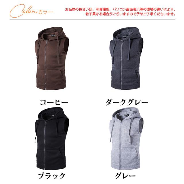 セール パーカー タンクトップ メンズ Tシャツ フード付き 裏起毛 ノースリーブ スポーツ ランニング トップス 重ね着 通気性 スウェット 無地