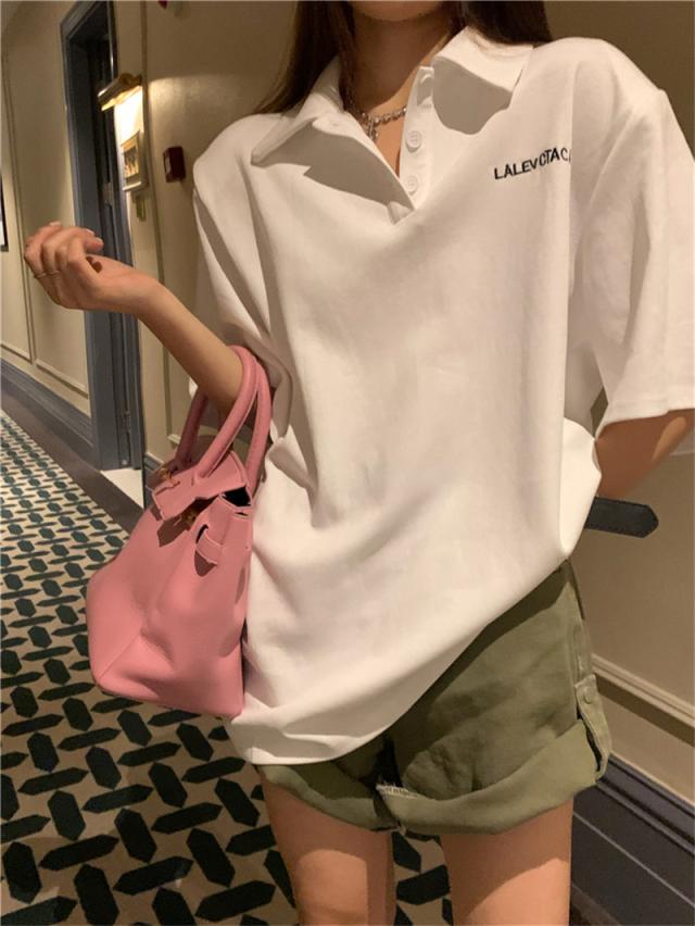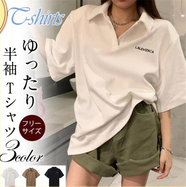 半袖ポロシャツ レディース ワンピース チュニック トップス ロング 折り襟 カジュアル カットソー ゆったり おしゃれ 英字 ビジネス 春夏 無地