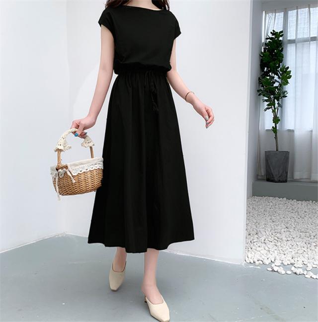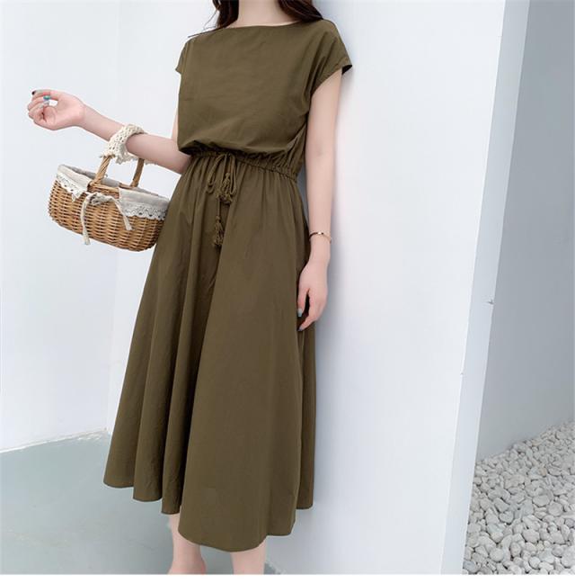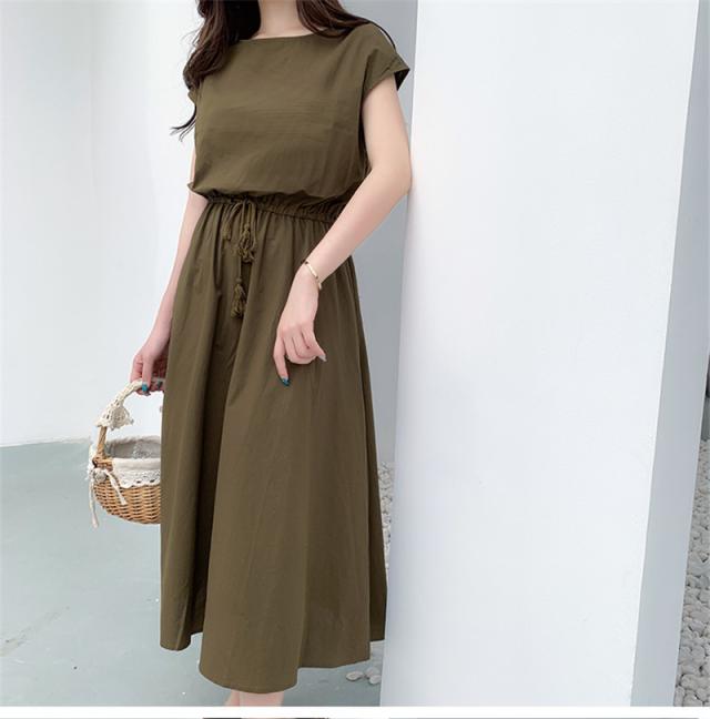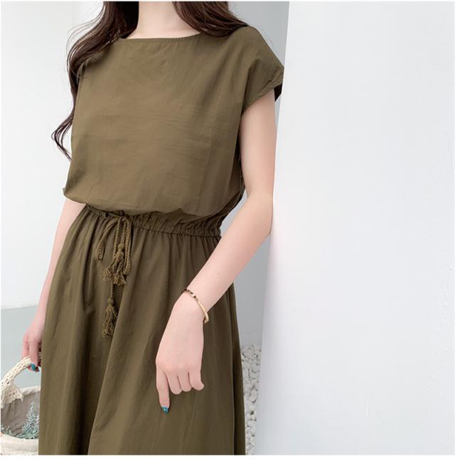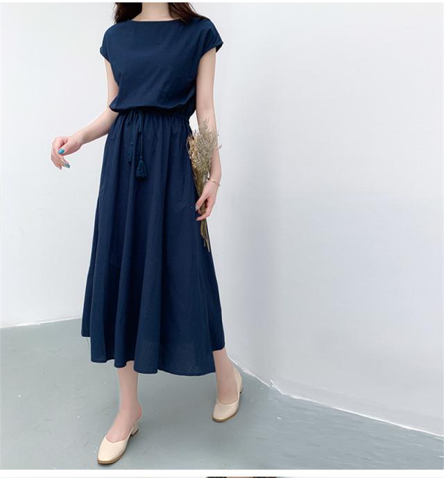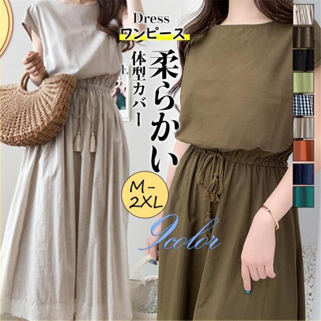 ワンピース レディース コットンリネン ロングワンピース オシャレ 無地 半袖 体型カバー 大きいサイズ ゆったり ウエスト調節 着痩せ 旅行 春 秋