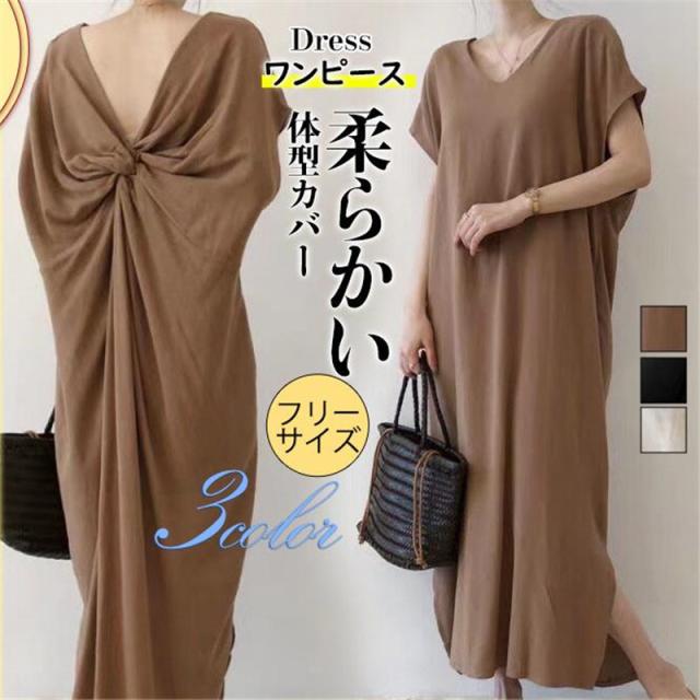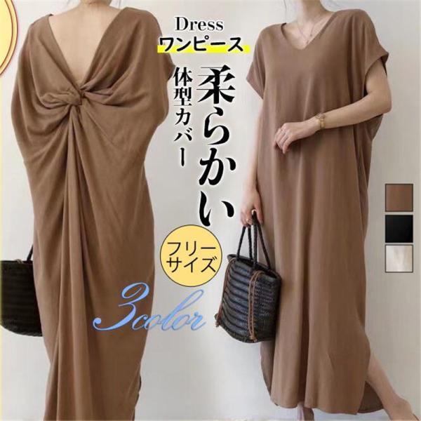 ワンピース レディース コットンリネン ロングワンピース オシャレ 無地 半袖 体型カバー 大きいサイズ ゆったり 韓国ファション 旅行 春 秋