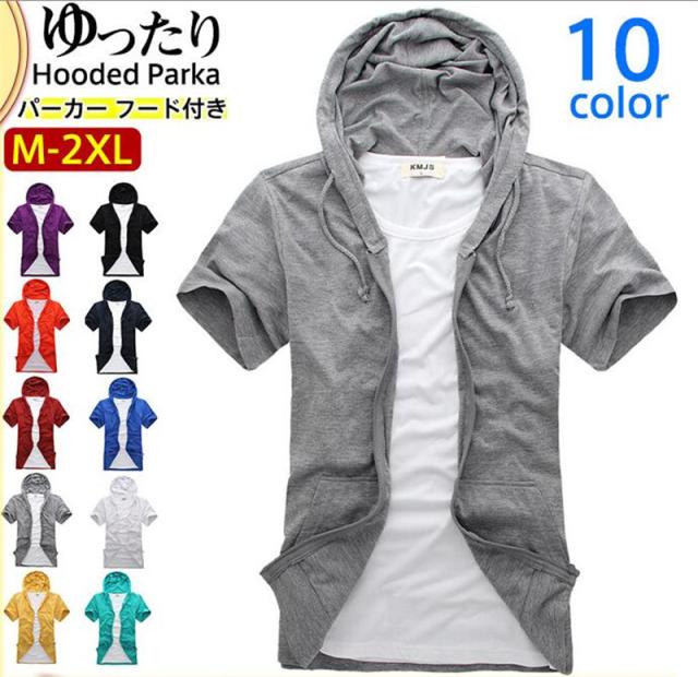 パーカー フード付き 半袖パーカー メンズ カジュアル ゆったり 着痩せ 羽織り トップス 肌触り ルームウェア スポーツウェア 通学 プレゼント