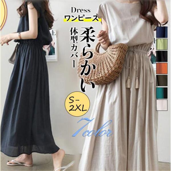 ワンピース レディース カジュアルワンピース ウエスト調節 オシャレ 無地 半袖 体型カバー 大きいサイズ ゆったり 部屋着 着痩せ 旅行 春 秋