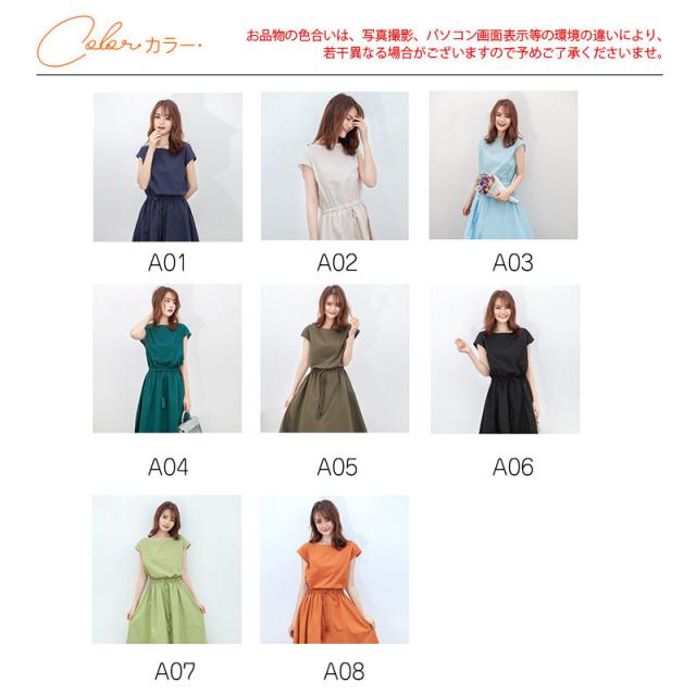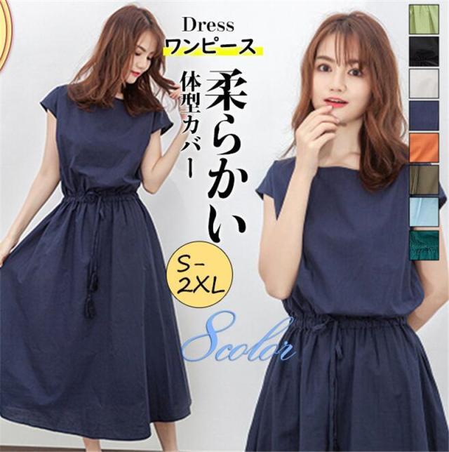 ワンピース レディース カジュアルワンピース ウエスト調節 オシャレ 無地 半袖 体型カバー 大きいサイズ ゆったり 部屋着 着痩せ 旅行 春 秋