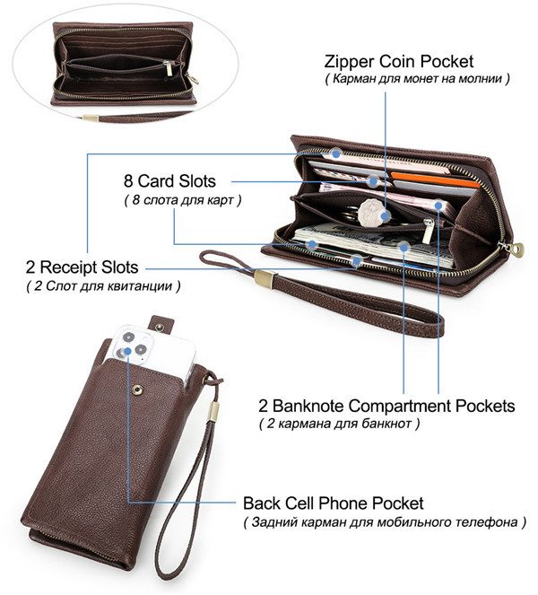 【キーワード】高品質 使いやすい スキミング防止 軽量 ユニセックス スマホポーチ カーボンレザー コインケース 大容量 多機能 L字ファスナー 二つ折り