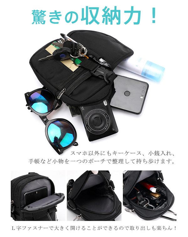 スマホバッグ ベルトポーチ 撥水 ショルダーバッグ 斜めがけ ヒップバッグ ミリタリー スマホポーチ ウエストバッグ 多機能 3way 大容量 メンズ