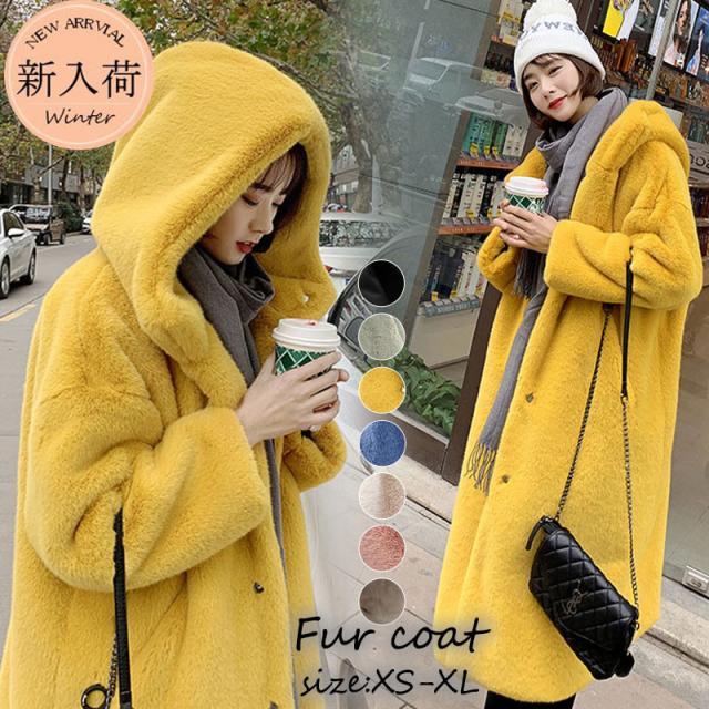 セール ファーコート レディース 毛皮コート トップス フード付き ロング フェイクファー アウター カジュアル ゆったり 厚手 保温 きれいめ 上品