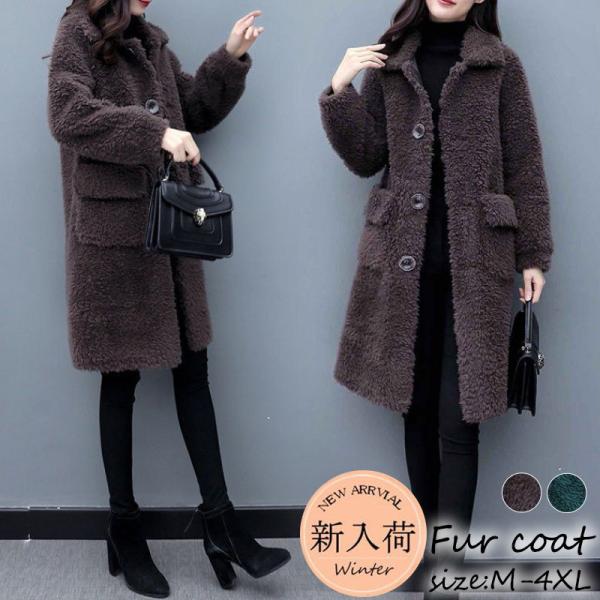 激安 ファーコート レディース 毛皮コート トップス 無地 ロング フェイクファー アウター カジュアル ゆったり 厚手 保温 防寒 暖かい おしゃれ