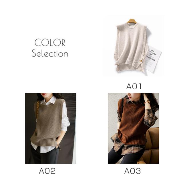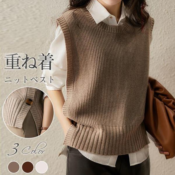 ベスト プルオーバー ノースリープ 重ね着 チョッキ サイドスリット レディース ベストセーター ニット ジレ トップス 春 韓国風 ゆったり 可愛い